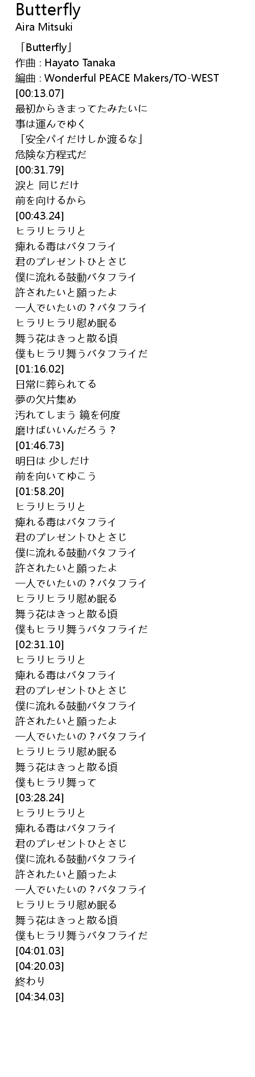 | [00:00.07] | 「Butterfly」 |