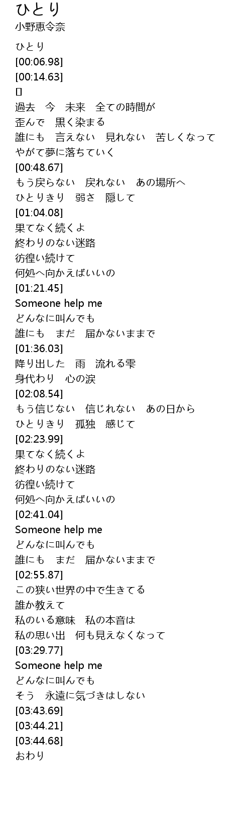| [03:30.12] | Someone help me |