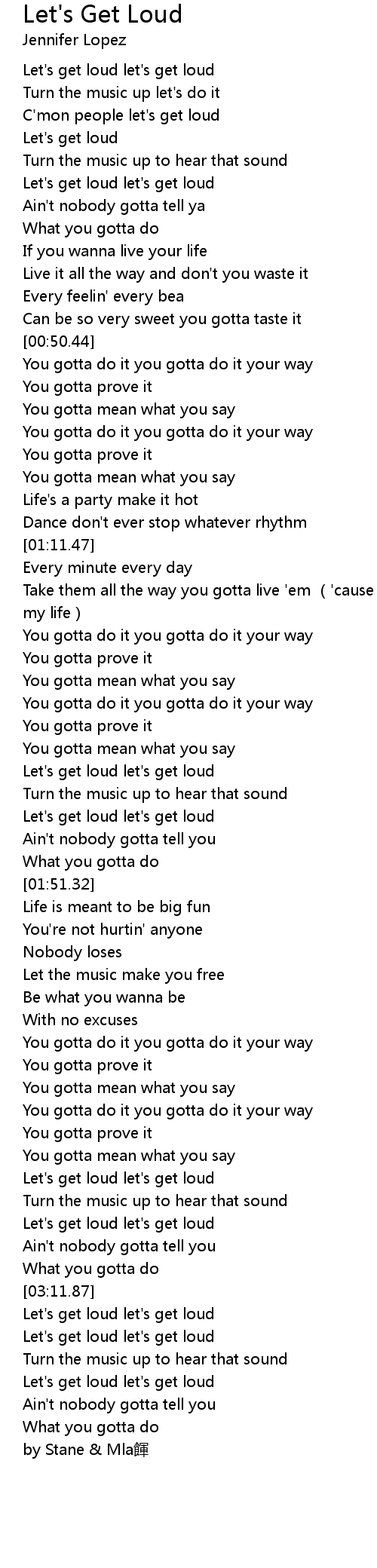 | [03:03.13] | Let's get loud let's get loud |