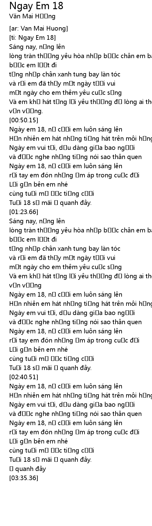 | [00:50.34] | Ngà y em 18, n c i em lu n sá ng l n |