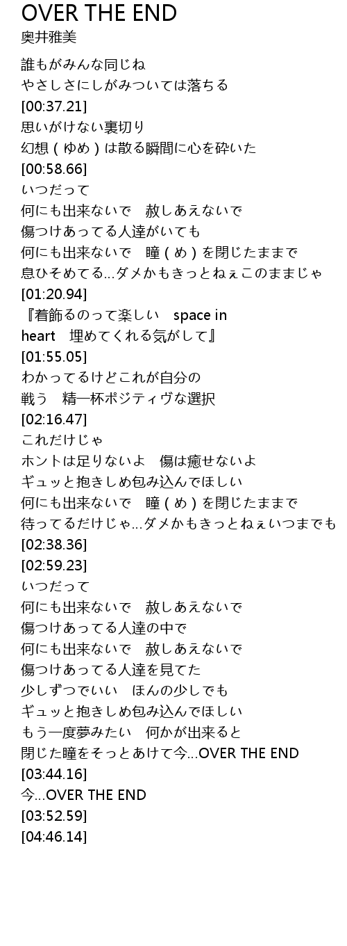 | [03:48.99] | 今…OVER THE END |