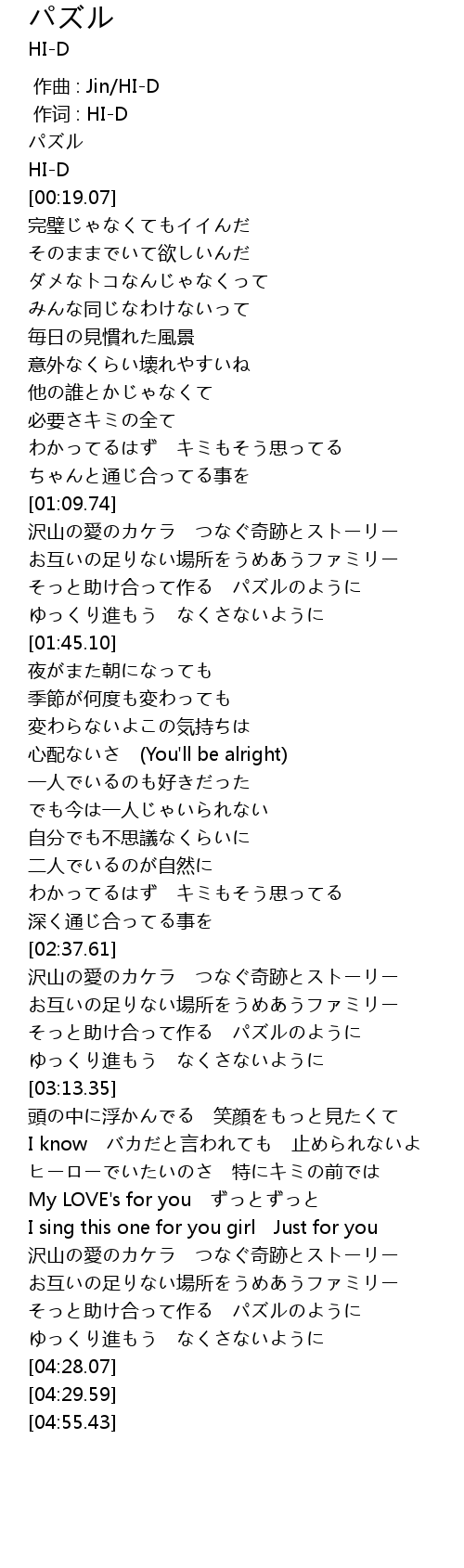 | [04:05.93] | そっと助け合って作る パズルのように |