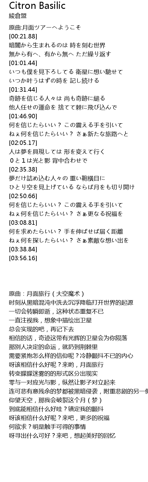 | [00:16.43] | 原曲:月面ツアーへようこそ |