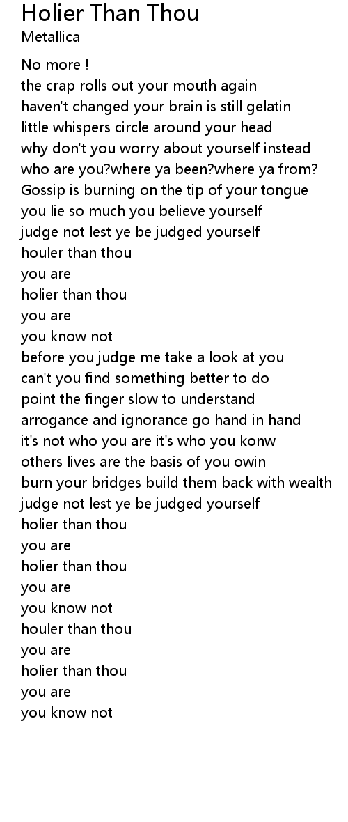 Holier Than Thou Lyrics