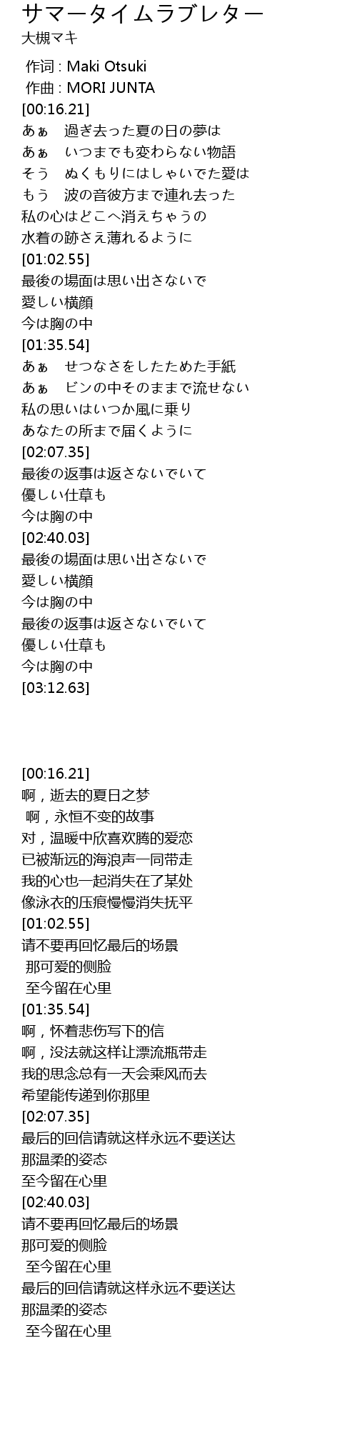 | [00:00.000] | zuò cí : Maki Otsuki |