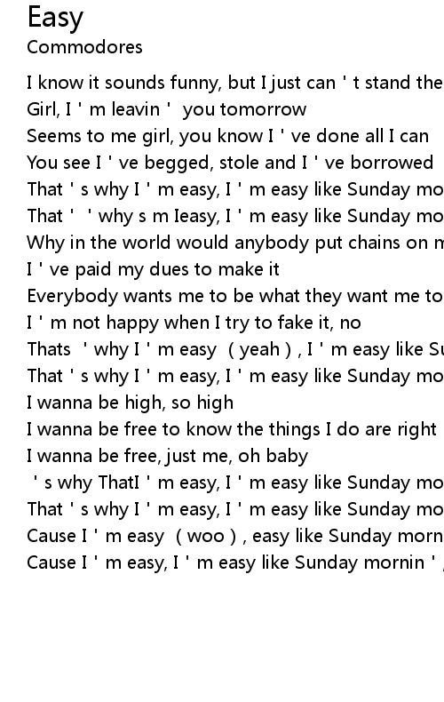 | [00:45.480] | That's why I'm easy, I'm easy like Sunday mornin' |