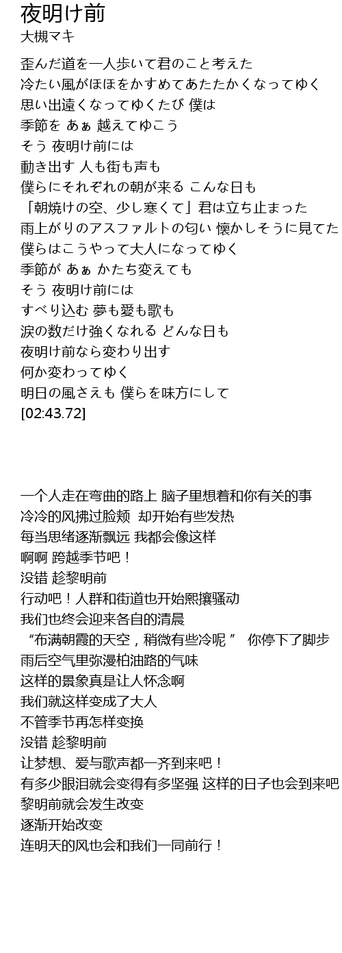 | [00:45.81] | 季節を あぁ 越えてゆこう |