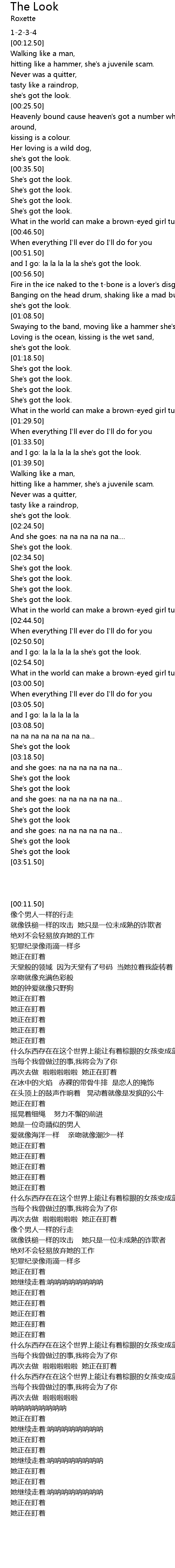 | [00:52.50] | and I go: la la la la la she's got the look. |