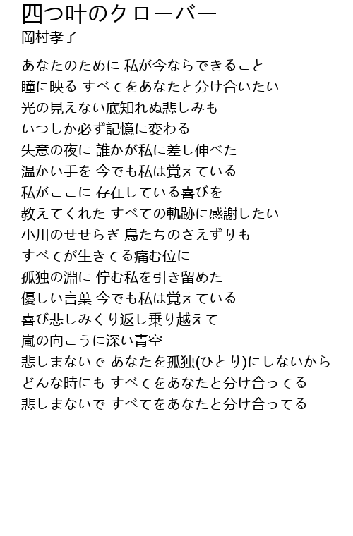 | Song | 四つ叶のクローバー |