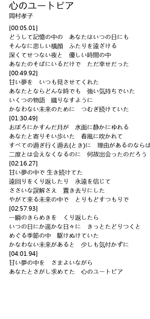 | [04:12.93] | あなたとさがし求めてた 心のユートピア |