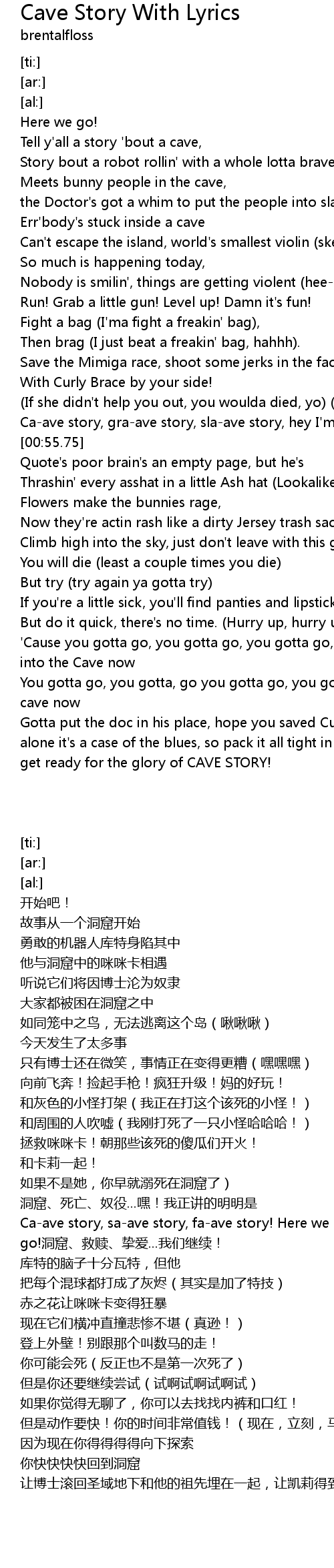 | [00:10.23] | Tell y'all a story 'bout a cave, |