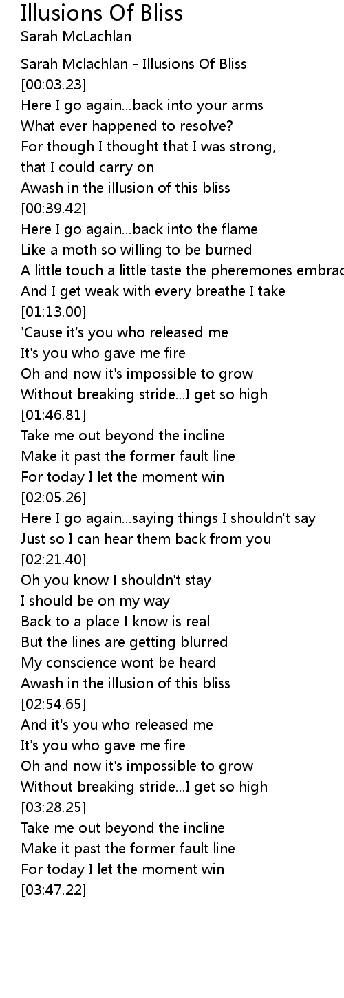 [00:01.12] Sarah Mclachlan - Illusions Of Bliss