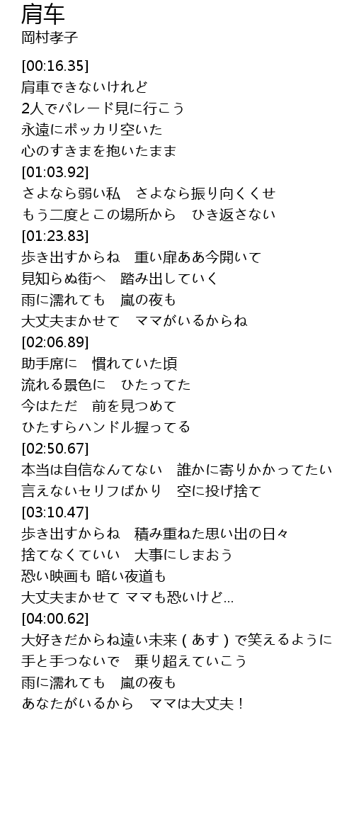 | [01:56.54] | 大丈夫まかせて ママがいるからね |