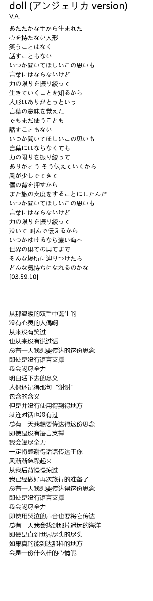 | [00:23.63] | 心を持たない人形 |