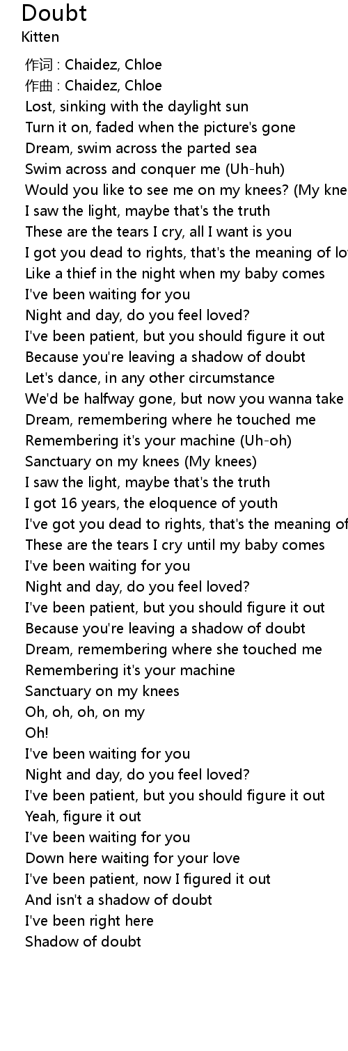 | [01:35.017] | Because you' re leaving a shadow of doubt |