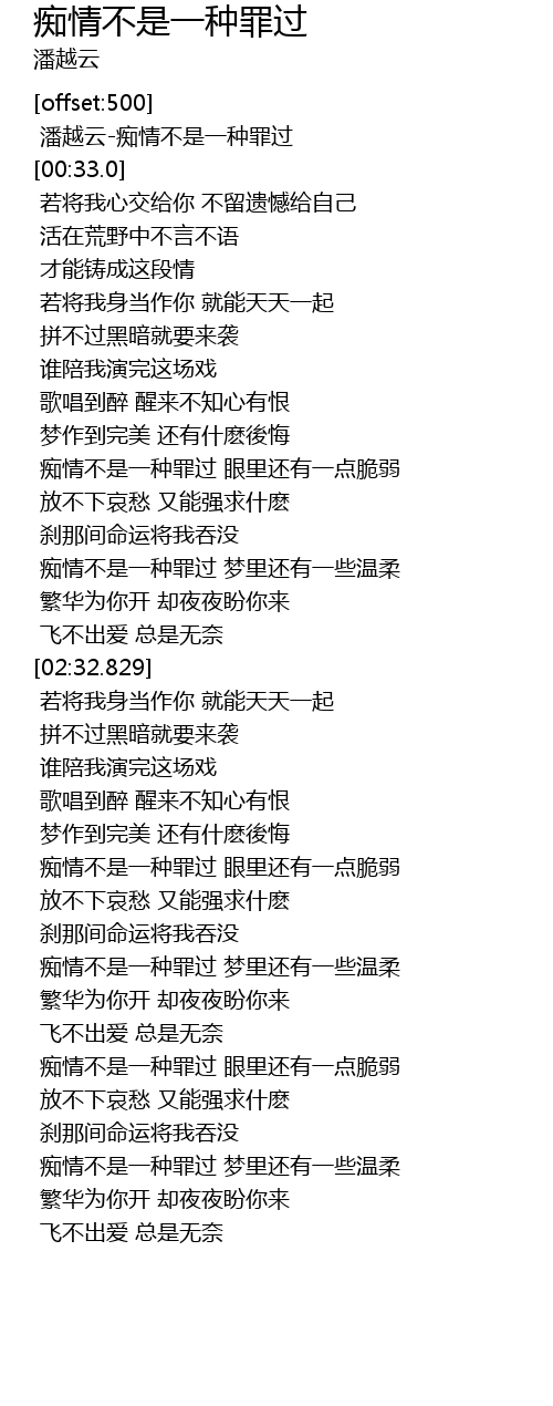 | [00:00.0] | 潘越云-痴情不是一种罪过 |