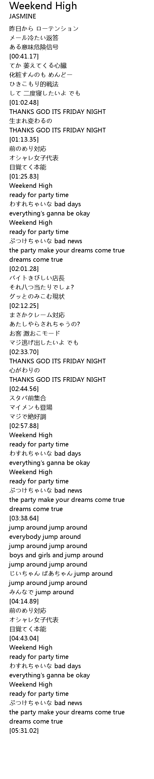 | [02:41.25] | THANKS GOD ITS FRIDAY NIGHT |