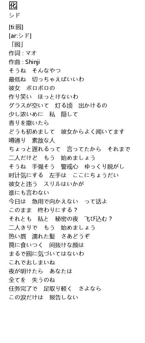 | [02:40.543] | 热い唇 濡れた髪 さあどうぞ |