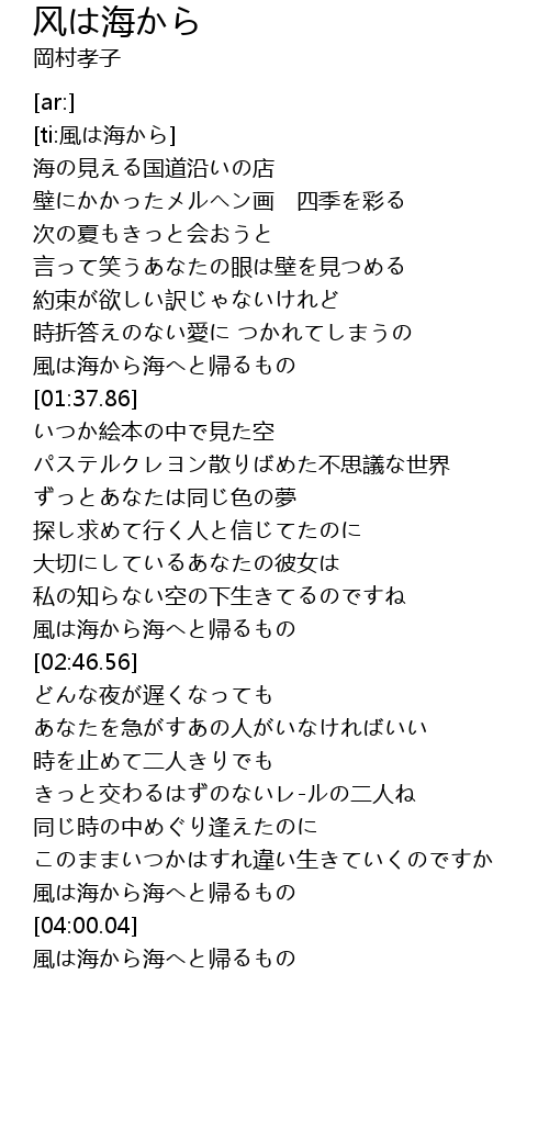 | [03:42.75] | このままいつかはすれ違い生きていくのですか |