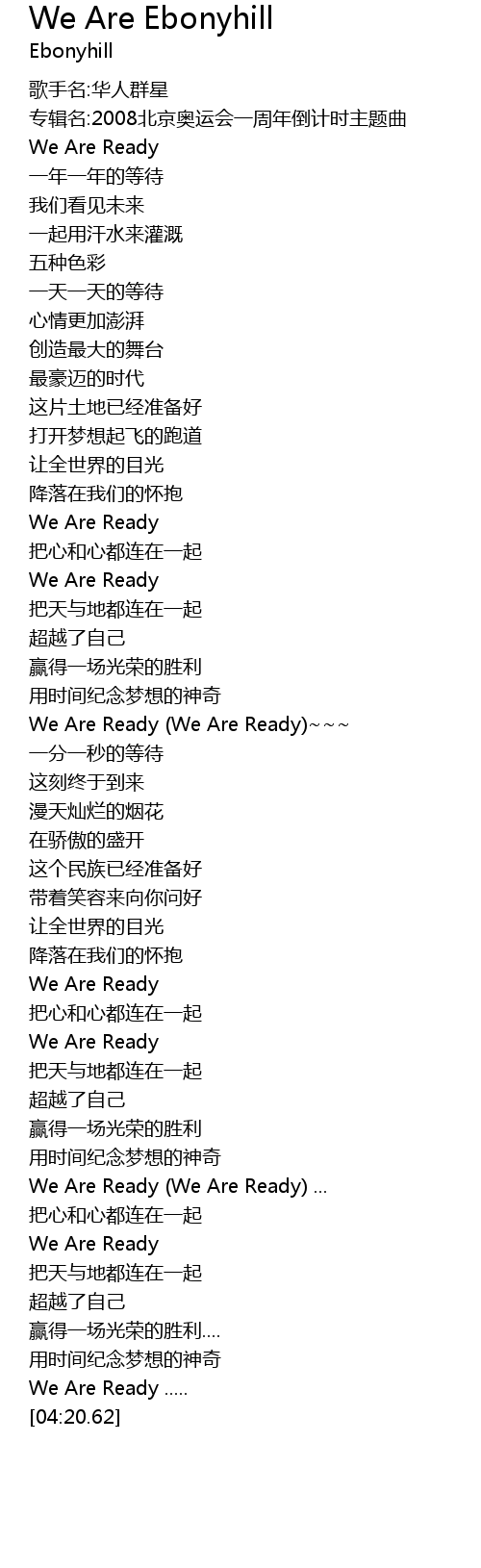 | [03:32.91] | We Are Ready We Are Ready ... |