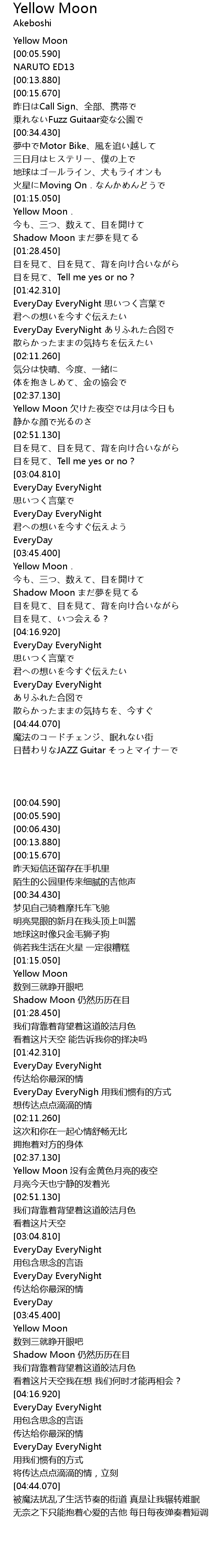 | [00:04.590] | Yellow Moon |
