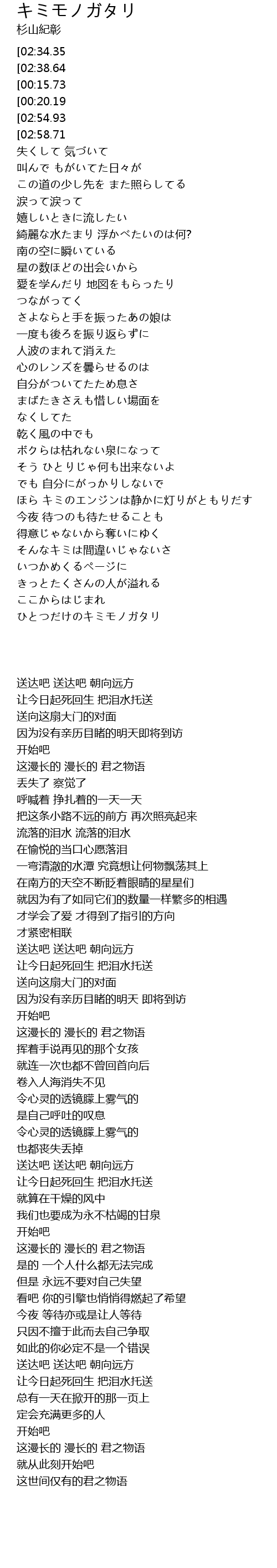 | [04:06.47][02:58.71][01:49.47][00:29.24] | 長い 長い キミモノガタリ |