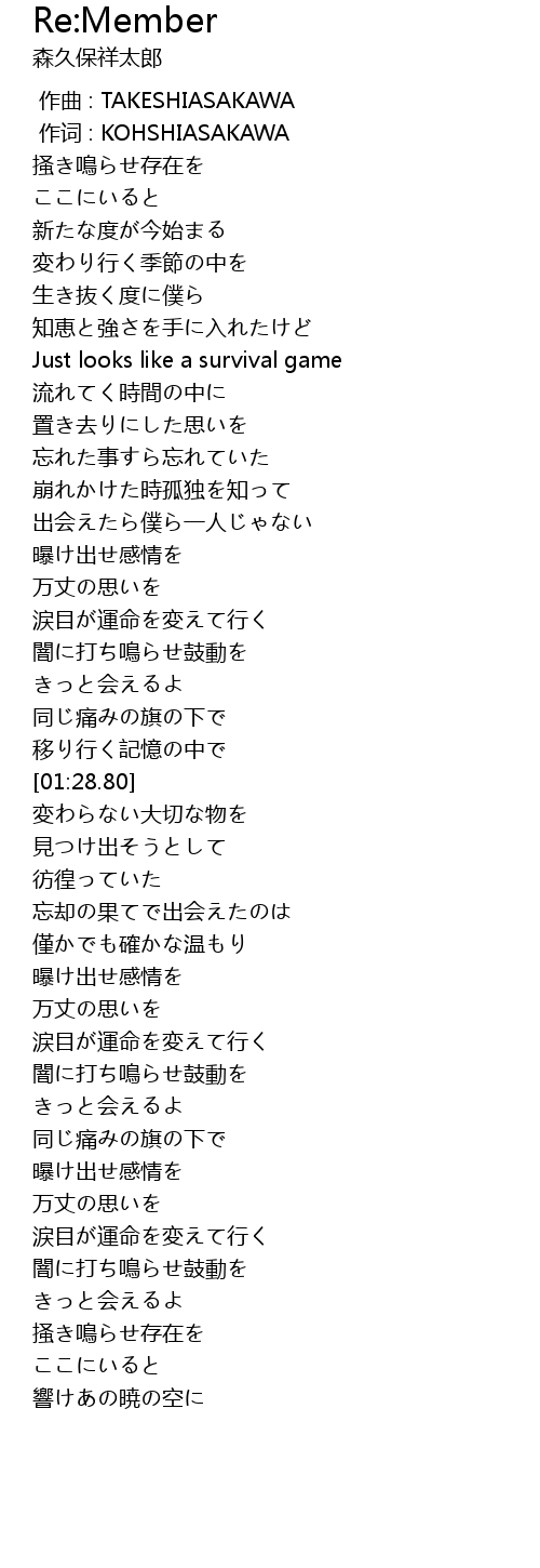 | [00:00.00] | 作曲 : TAKESHIASAKAWA |