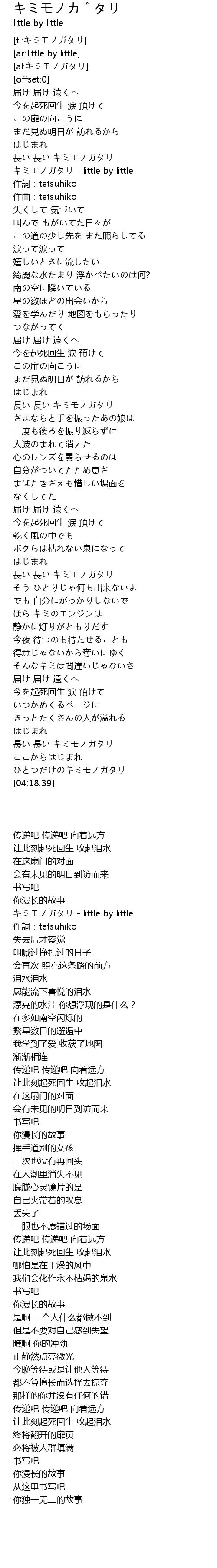 | [00:33.36] | キミモノガタリ - little by little |