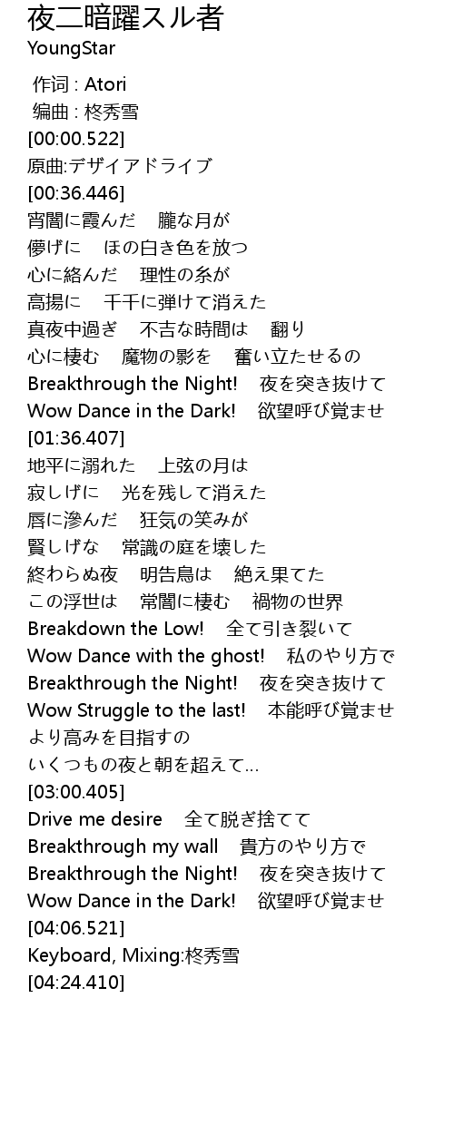 | [03:53.703] | Breakthrough the Night! 夜を突き抜けて |