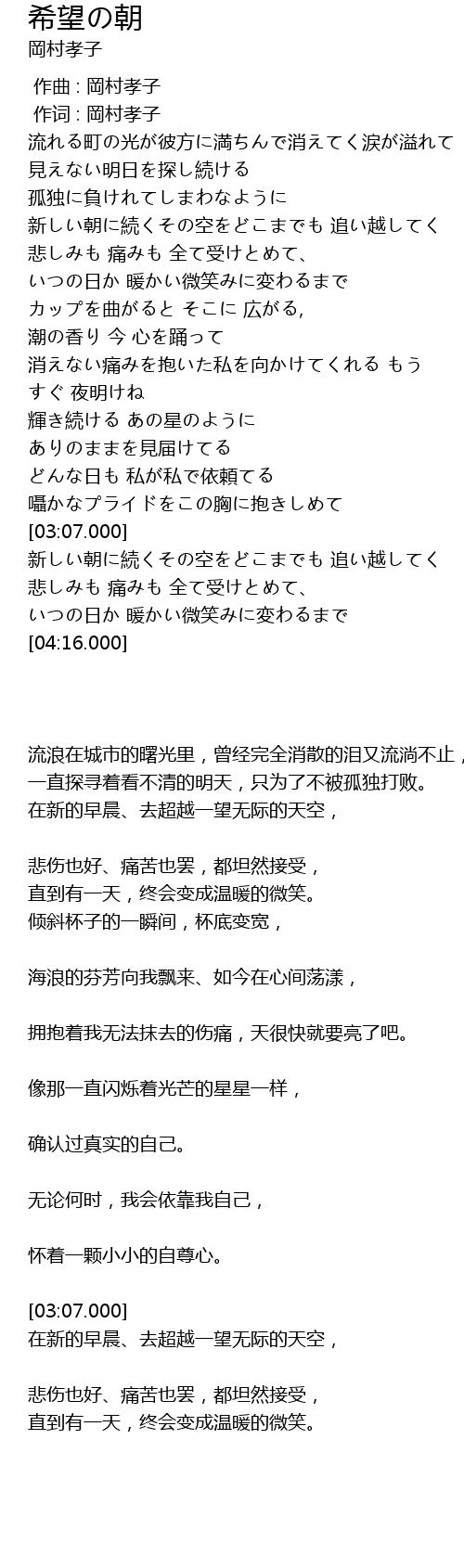 | [00:00.000] | 作曲 : 岡村孝子 |