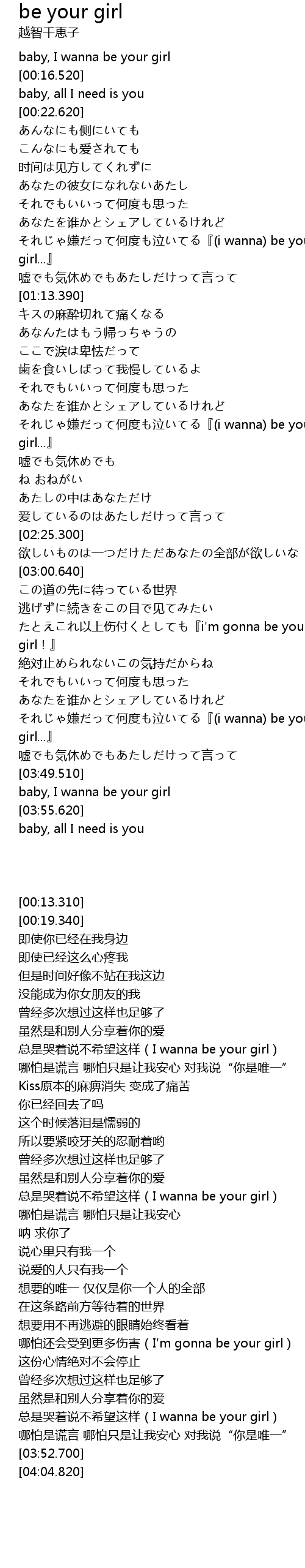 | [03:52.700] | baby, I wanna be your girl |