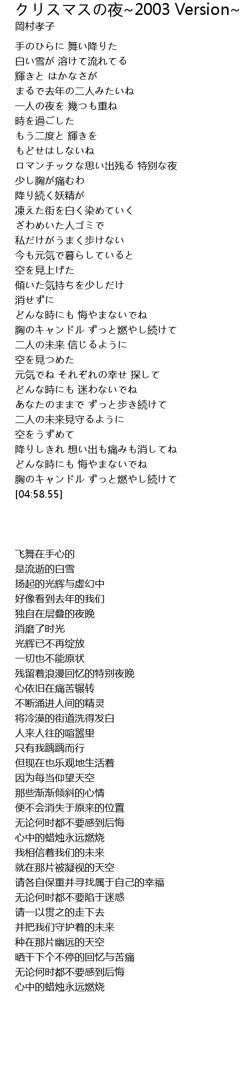 | [04:16.81] | 胸のキャンドル ずっと燃やし続けて |
