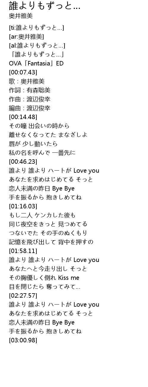| [00:46.83] | 誰より 誰より ハートが Love you |