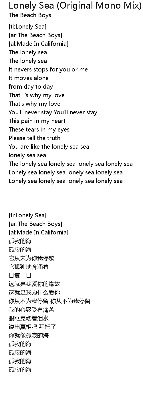 | [02:01.95] | Lonely sea lonely sea lonely sea lonely sea |