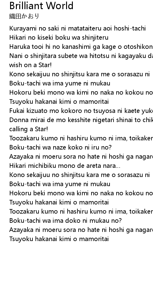 | Nani o shinjitara subete wa hitotsu ni kagayaku darou? | |