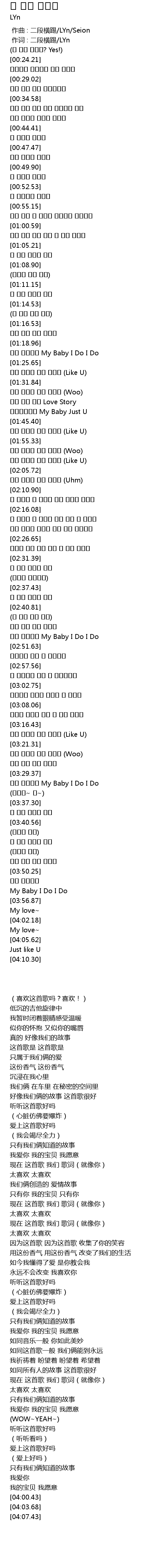 | [01:19.65] | 그댈 사랑해요 My Baby I Do I Do |