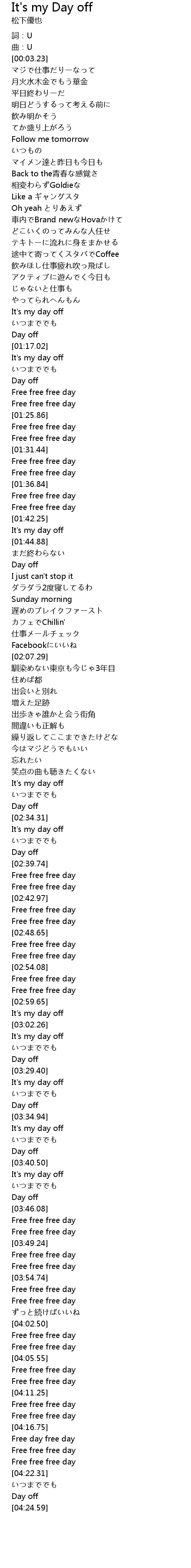 | [03:35.47] | It's my day off |
