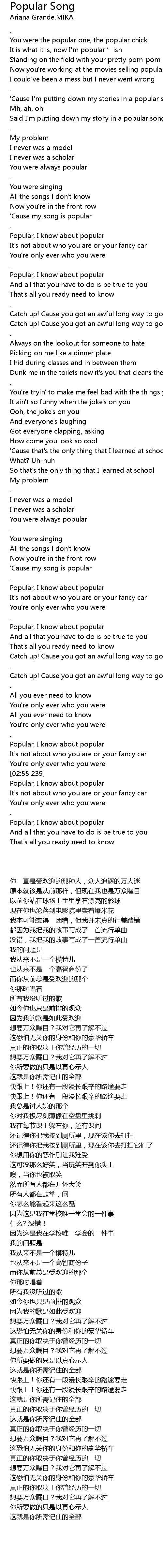 | [00:21.579] | ' Cause I' m putting down my stories in a popular song |