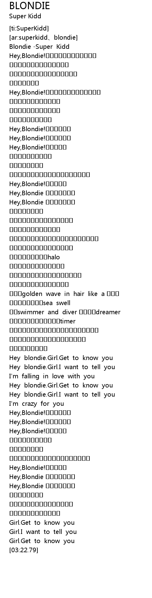 | [02:22.54] | Hey blondie.Girl.Get to know you |