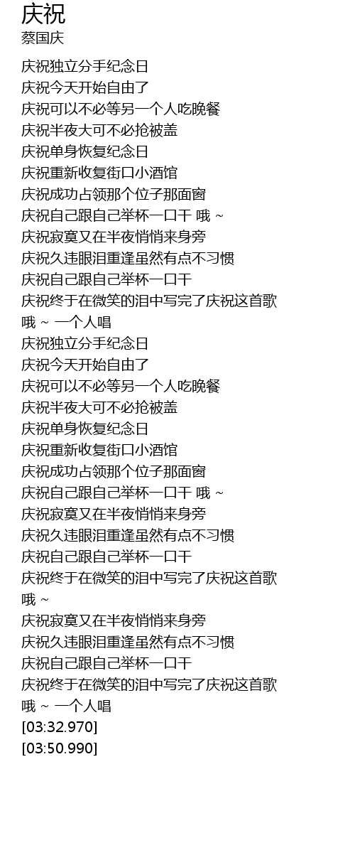 | [00:53.330] | 庆祝单身恢复纪念日 |