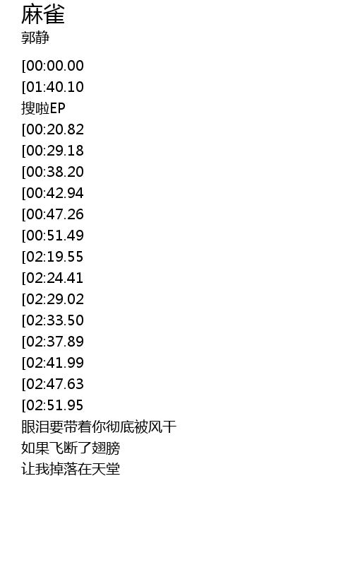| [01:36.55][00:00.00] | 郭 静 - 麻雀 |