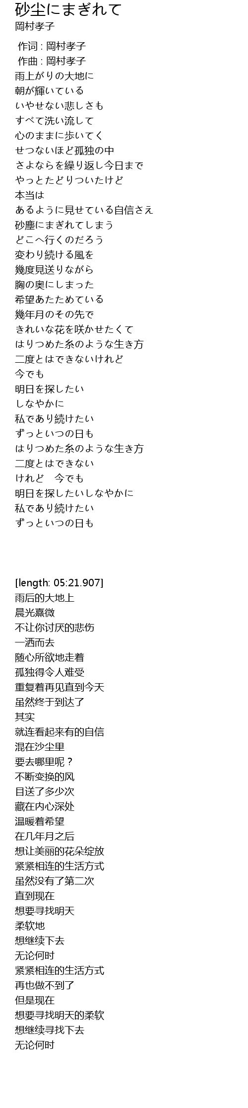 | [00:00.000] | 作词 : 岡村孝子 |