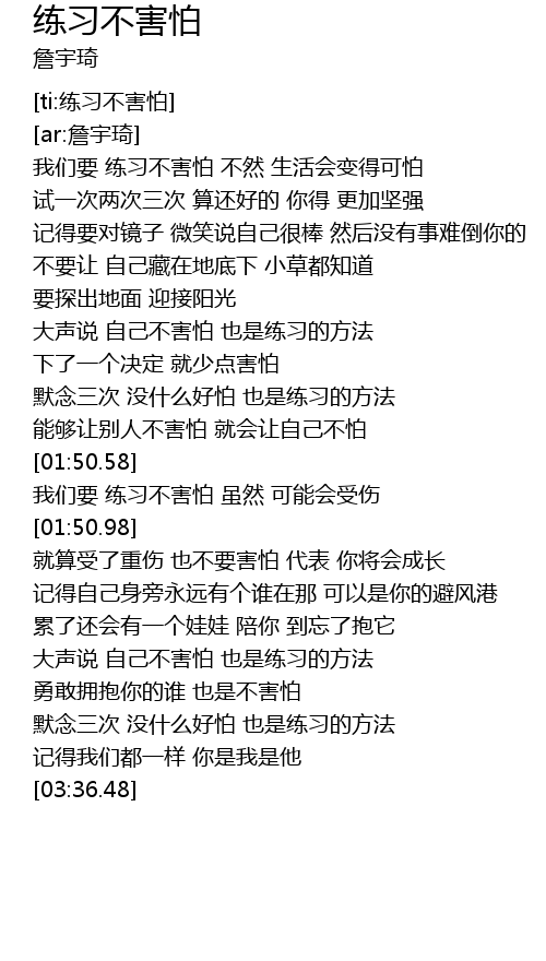 | [03:23.42] | 默念三次 没什么好怕 也是练习的方法 |