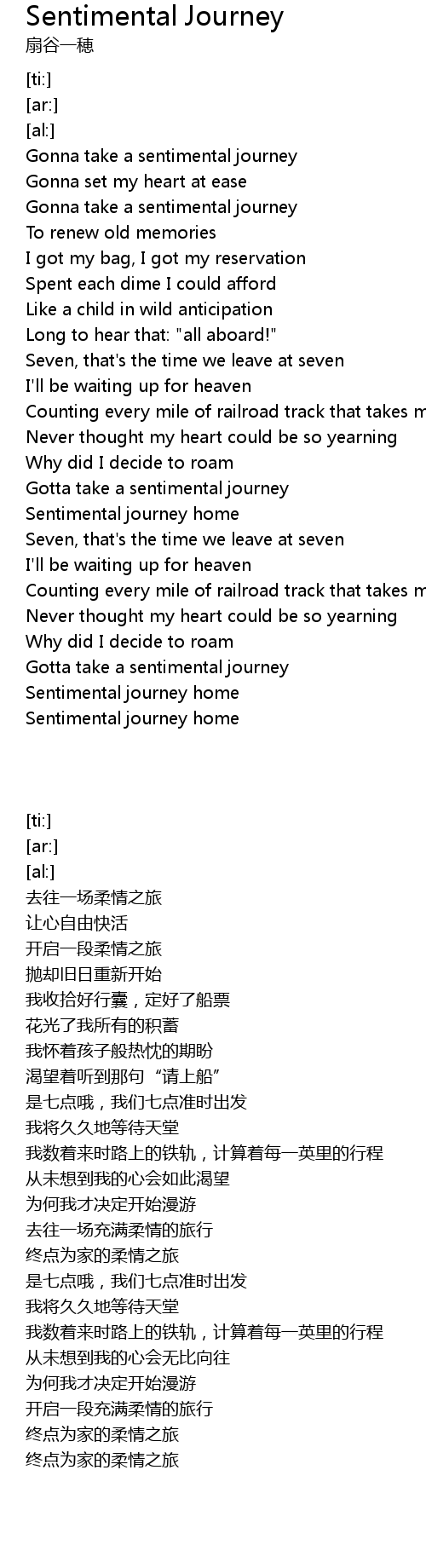 | [00:44.20] | Gonna take a sentimental journey |