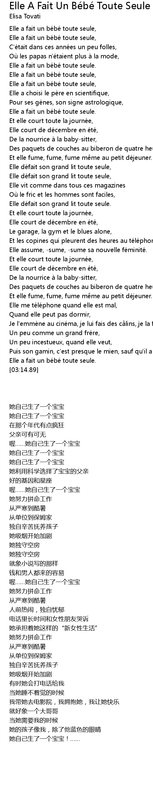 | [00:45.84] | Elle a fait un bébé toute seule. |