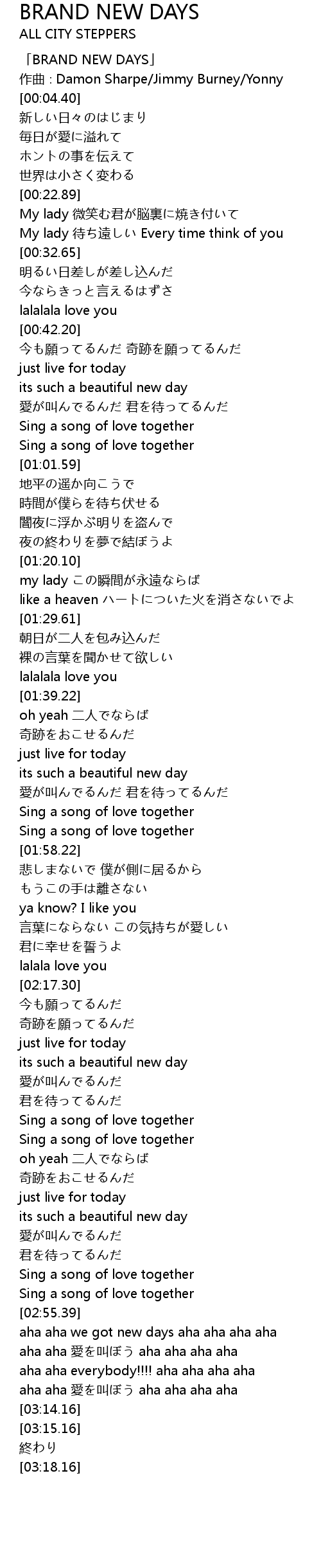 | [02:56.06] | aha aha we got new days aha aha aha aha |