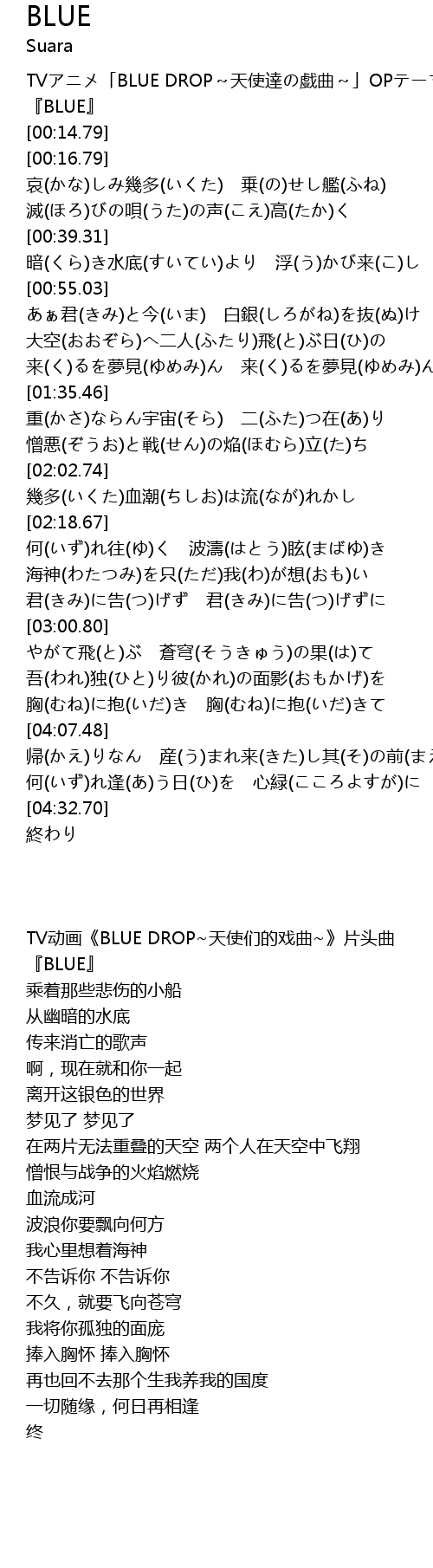 | [00:04.79] | TVアニメ「BLUE DROP~天使達の戯曲~」OPテーマ |