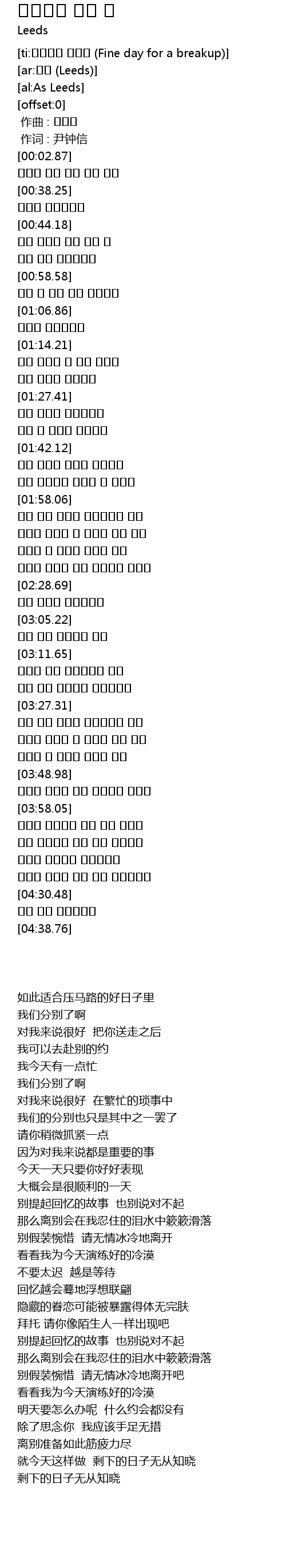 | [03:42.38] | 아쉬운 척 말아요 차갑게 가줘 |