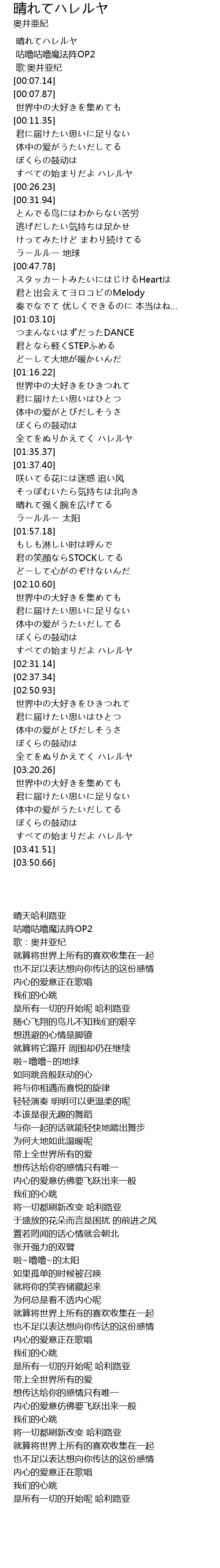 | [02:25.82] | すべての始まりだよ ハレルヤ |