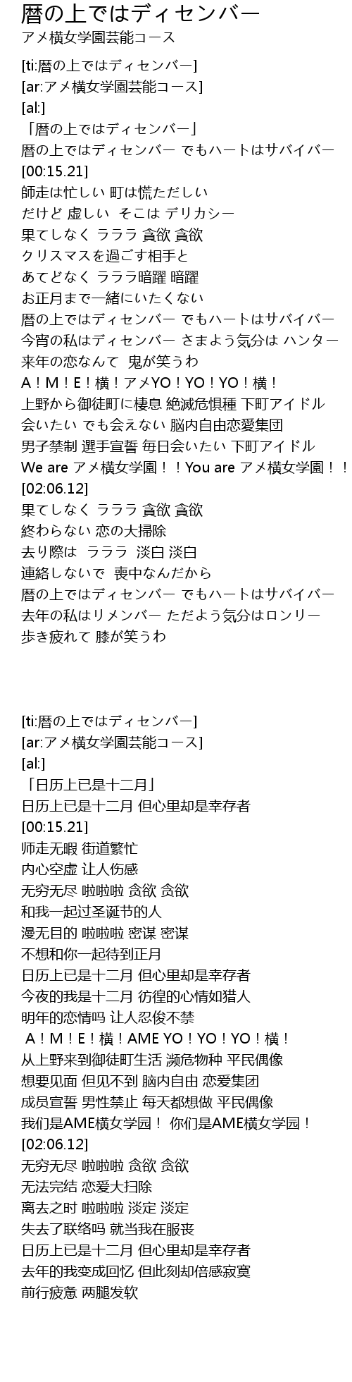 | [01:12.45] | 暦の上ではディセンバー でもハートはサバイバー |